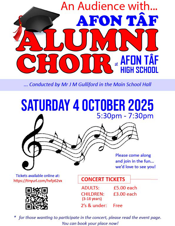 A rehearsal is planned on the morning of Saturday 4 October 2025 in the Main School Hall at Afon Tâf High School, Troedyrhiw, led by the one and only Mr Jonathan Gulliford.